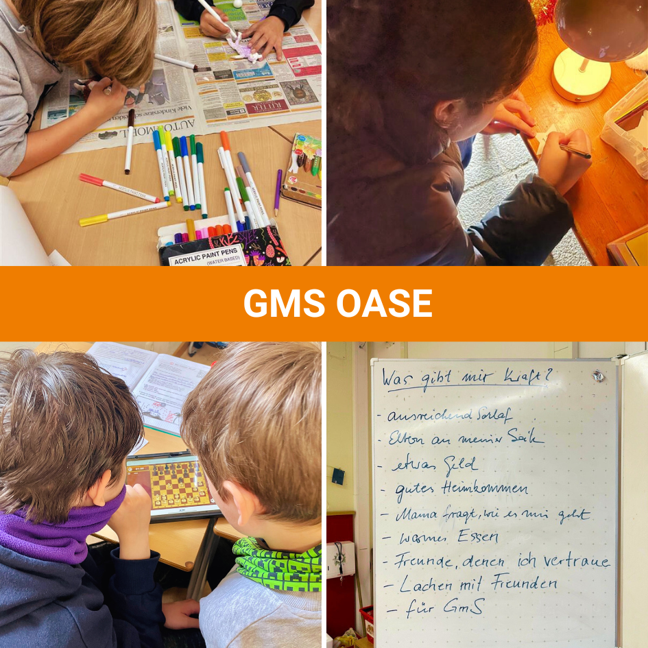 Die GMS Oase ist ein sozialpädagogisch begleiteter Lern- und Erlebnisraum – ein geschützter Rückzugsort im Schulalltag. Hier können Kinder und Jugendliche zur Ruhe kommen, Konflikte klären, lernen, kreativ sein oder einfach durchatmen, ohne den Unterrichtsfluss der Klasse zu stören. Die GMS Oase wird in enger Kooperation mit Schulleitung, Lehrkräften und Schulsozialarbeit umgesetzt.