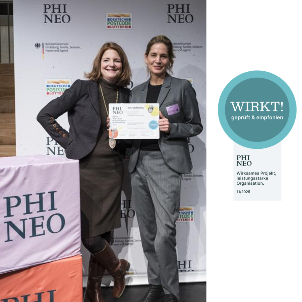 Bei der feierlichen Verleihung des PHINEO-Wirkt-Siegels wurde Stiftung Gesellschaft macht Schule gGmbH als eine von 37 Organisationen am 26.11.2025 in Berlin ausgezeichnet. Ein Analyseprozess von etwa zehn Monaten ging voraus. In dieser Zeit wurden unsere Arbeitsweise, unsere Wirkung und unsere organisatorischen Strukturen umfassend geprüft. Die Vergabe des Siegels beruht auf einem zweistufigen Verfahren, das zuerst das Wirkungspotenzial des Projekts und anschließend die Leistungsfähigkeit der Organisation bewertet.